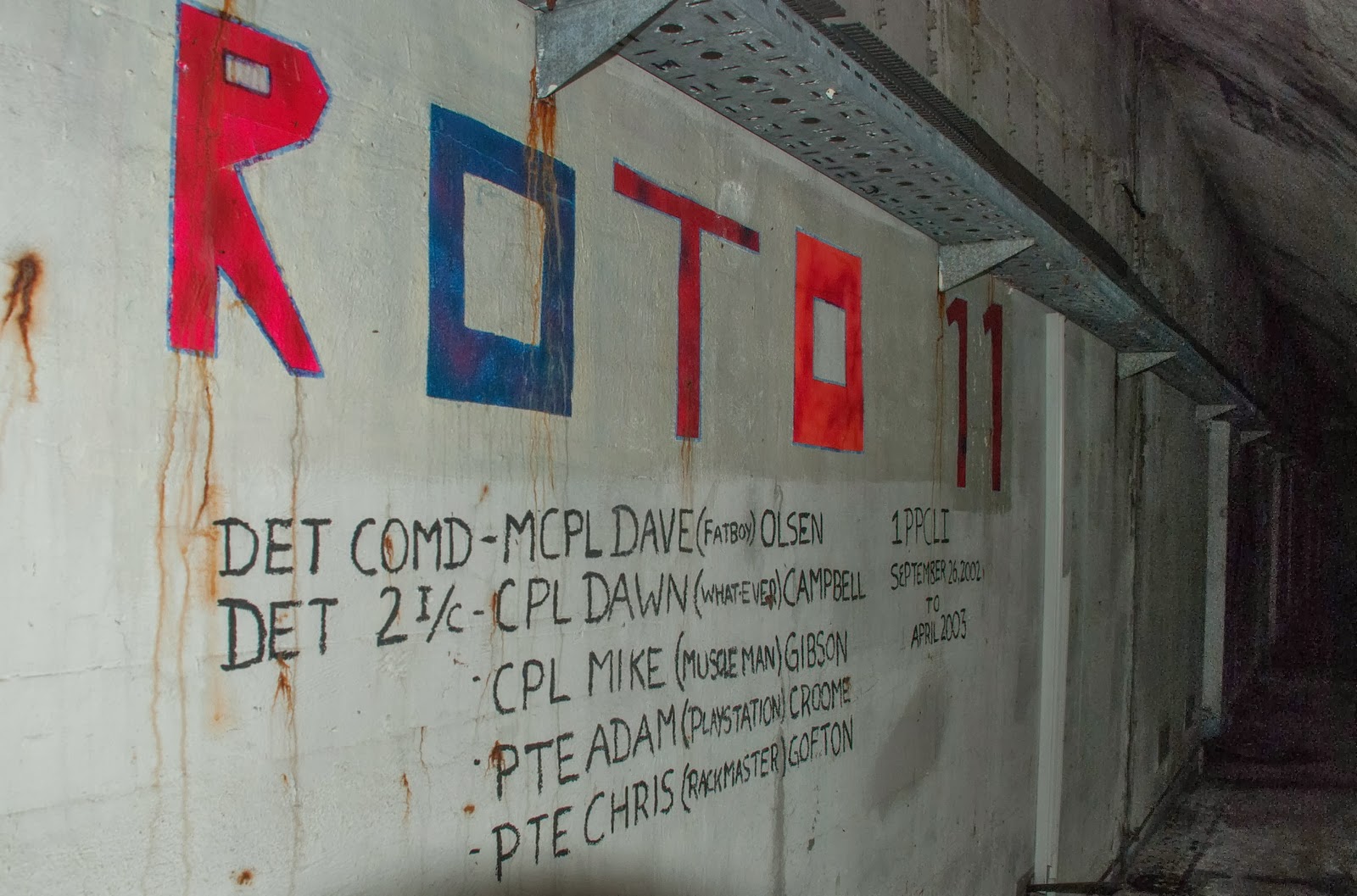 | Tutaj widzimy ślady pod wojskach kanadyjskich, stacjonujących tu w latach 1995 - 2003. |