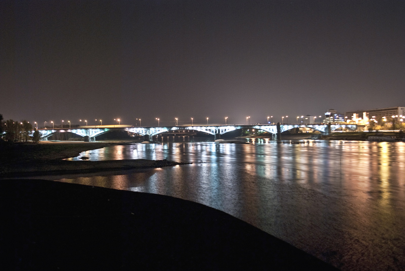 (Widok z filaru Mostu Średnicowego. Zdjęcia będą nocne, ponieważ Most Średnicowy nie ma kładki technicznej, trzeba iść po konstrukcji, a jak się idzie po ciemku, to człowiek nie widzi, co ma pod stopami i się nie stresuje:) )