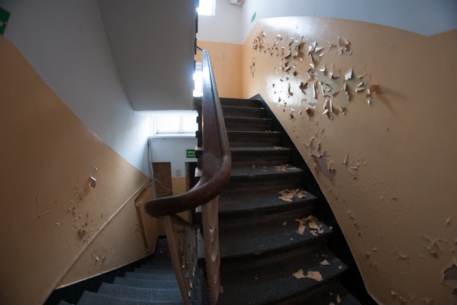 | O pensjonatowym charakterze próchniaczka świadczyć może obecność windy na posiłki. Winda stoi w urbexie, bo jest za mała aby zwieźć pacjenta na dolny transfer ... |
